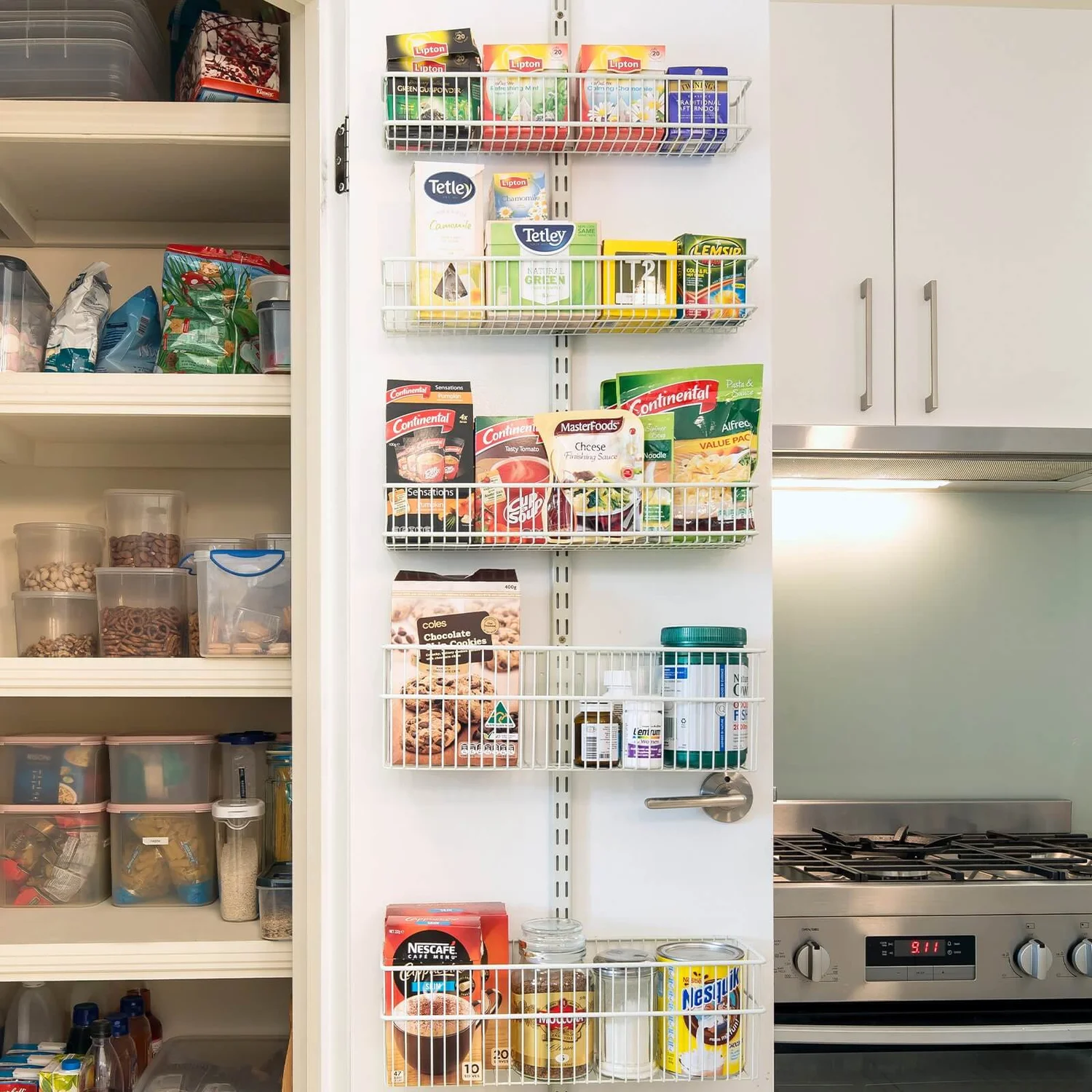 This Medium Storage Basket is ideal for steel and aluminium cans, hair straighteners, coffee mugs and more. Combine it with the Over Door Hook and mount in your pantry or use as storage for your bathroom or other rooms around your home.