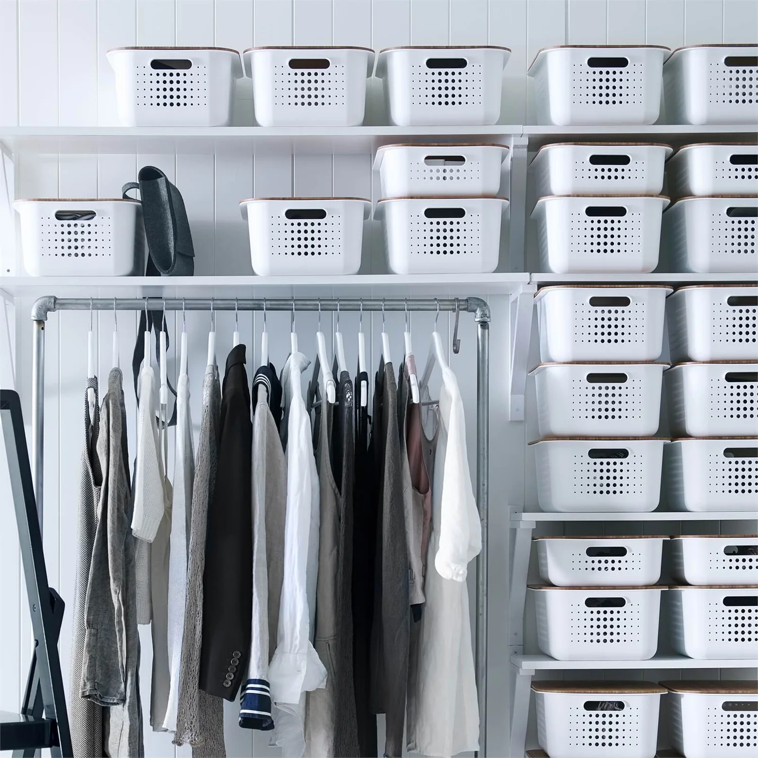 - Allows baskets to stack